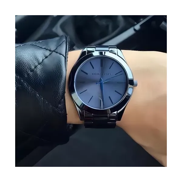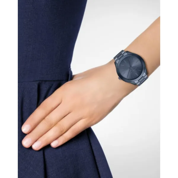 A Michael Kors Blair MK3419 elegáns női karóra kifinomult megjelenést kínál a mindennapokra és alkalmi viselethez is. A sötétkék számlap diszkrét márkajelzéssel készült, amelyet ezüstszínű mutatók egészítenek ki, míg a harmonizáló sötétkék tok és fémszíj egységes, modern összhatást teremt. A megbízható кварc szerkezet pontos időmérést biztosít, a minerálüveg pedig ellenálló a mindennapi használat során fellépő karcokkal szemben.