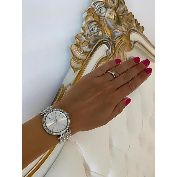 A Michael Kors MK3190 a népszerű Darci kollekció elegáns női karórája, amely kifinomult megjelenésével és időtálló stílusával hívja fel magára a figyelmet. Az ezüstszínű számlap és a csillogó cirkóniadíszítés különleges, nőies karaktert kölcsönöz ennek a modellnek, így remek választás mindennapi viselethez és alkalmi öltözékhez is.