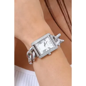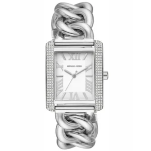 Michael Kors Emery női karóra – stílusos, elegáns választás a mindennapokra és alkalmakra. Az ezüst színű, rozsdamentes acél tok és karkötő tartós viseletet ad, a pontos kvarc szerkezet pedig megbízható működést biztosít elemes táplálással. A csillogó kristályokkal díszített tok kifinomult megjelenést kölcsönöz, a mineral üveg pedig védi a számlapot a hétköznapi igénybevétel során.
