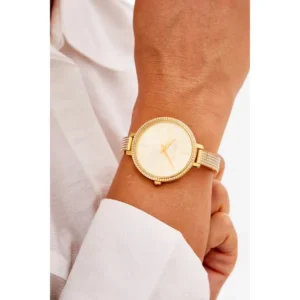 Elegáns arany–fekete rozsdamentes acél női óra pontos kvarc szerkezettel, amely kényelmesen viselhető a hétköznapokban és alkalmakon is. WR50 vízállósága megkönnyíti a mindennapi használatot, az eredeti díszdoboz pedig tökéletes ajándékká teszi.