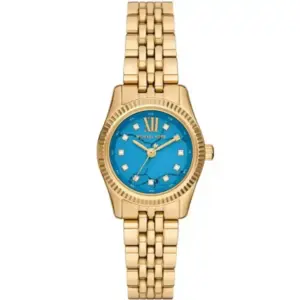 Elegáns, mégis sokoldalúan viselhető női karóra, amelynek kék, cirkóniákkal díszített számlapja és aranyszínű nemesacél kivitele igazán kifinomult megjelenést ad. A kvarc szerkezet, az ásványi üveg és az 50 méteres vízállóság kényelmes, megbízható választássá teszi a mindennapokra.