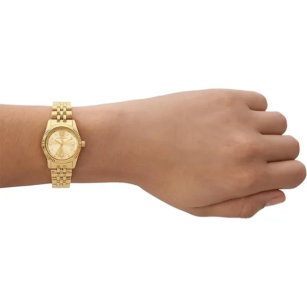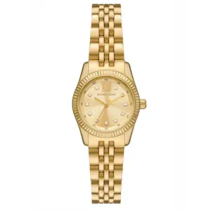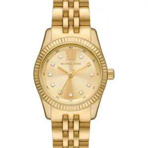 A Michael Kors MK4741 Lexington női karóra látványos és elegáns kiegészítő, amely sportosabb és hétköznapi öltözékhez is remekül illik. Az aranyszínű, zirkóniákkal díszített számlap kifinomult megjelenést ad, míg a hozzá illő tok és rozsdamentes acél karkötő időtálló, nőies stílust képvisel. Az ásványi üveg segít védeni az órát a mindennapi használat során fellépő sérülésektől, az 50 méteres vízállóság pedig ellenállóvá teszi fröccsenő vízzel szemben, például kézmosás közben.