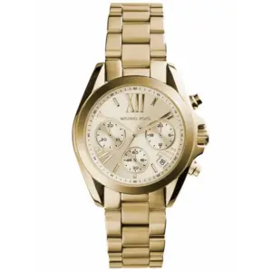 A Michael Kors MK5798 Mini Bradshaw stílusos női karóra, amely kiváló választás mindennapi viselethez és alkalmi megjelenéshez egyaránt. Az aranyszínű számlap, a hozzá illő mutatók és az elegáns római számokkal, illetve indexekkel kialakított jelölések kifinomult összhatást teremtenek. A modell analóg stopper funkcióval, dátumkijelzéssel és 24 órás kijelzővel is rendelkezik.