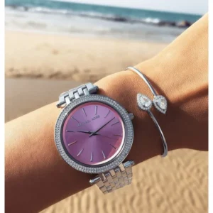 A Michael Kors MK3352 Mini Darci egy kifinomult, időtálló női karóra, amely a letisztult luxust ötvözi a mindennapi praktikummal. Az ezüstszínű nemesacél tok és szíj elegáns megjelenést ad, a pink számlap pedig nőies, modern karaktert kölcsönöz. A precíz kvarc szerkezet elemes működéssel gondoskodik a megbízható pontosságról.