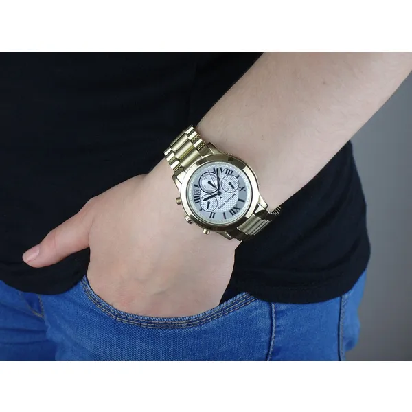 Elegáns, aranyszínű acél kivitelével és fehér számlapjával könnyen kombinálható a mindennapi és alkalmi öltözékekhez. A kronográf, a dátumkijelző és a tartós ásványi üveg egyszerre nyújtanak praktikumot és megbízható használatot.