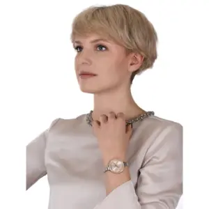 Az óra WR50 vízállósággal rendelkezik, így alkalmas enyhe vízzel való érintkezésre, például kézmosás vagy fürdés közben fellépő fröccsenések esetén. A rózsaarany színű tokot cirkóniadíszítés emeli ki, amely különösen nőies és kifinomult megjelenést ad.