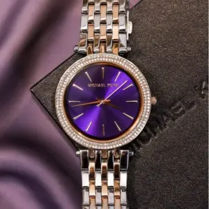 A Michael Kors MK3353 női karóra elegáns, klasszikus megjelenésű modell, amely stílusos választás a mindennapokra és alkalmi viselethez is. A rozé arany és ezüst színű, rozsdamentes acélból készült tok és szíj harmonikusan egészíti ki a lila számlapot, így az óra kifinomult és nőies összhatást kelt.