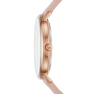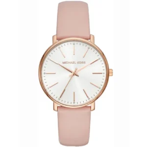 A Michael Kors MK2741 Pyper női karóra klasszikus, időtálló megjelenést kínál elegáns részletekkel. A rozéarany árnyalatú, rozsdamentes acél tok tartós és ellenálló a mindennapi használat során, míg a púderrózsaszín, természetes bőrszíj kényelmes viseletet ad egész nap. A pontos кварc szerkezet elemmel működik, a számlapot pedig karcálló ásványi üveg védi. A fehér számlapot finom cirkónia díszíti, amely visszafogottan fényűző hatást kelt.