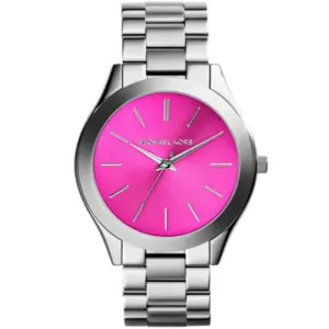 A Michael Kors Slim Runway MK3291 női karóra elegáns, klasszikus választás a letisztult stílus kedvelőinek. Az óra nemesacél tokja és szíja ezüst színű, amelyet a rózsaszín számlap tesz igazán nőiessé és különlegessé. A pontos működésről elemmel működő kvarc szerkezet gondoskodik, így a modell a mindennapi használat során is megbízható társ.