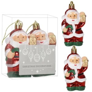 A törhetetlen műanyagból készült, 8 cm-es Mikulás karácsonyfadíszek élénk színei és csillámos felülete azonnal ünnepi hangulatot teremt. A 2 darabos szett könnyű, biztonságos választás gyerekekkel, házi kedvencekkel élőknek, tartós kialakítása pedig praktikus tárolással éveken át újrahasználható, így spórolhatsz a dekoráción.
