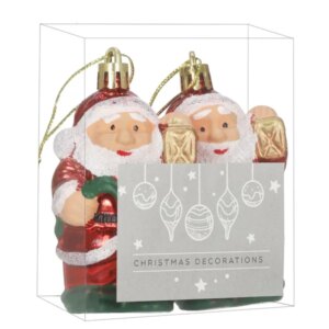 Az ünnepi dekoráció egyik legkedvesebb eleme a Mikulás figurás karácsonyfadísz. A 2 darabos szett nemcsak látványos, hanem praktikus is: a törhetetlen műanyagból készült díszek biztonságosak gyerekek és házi kedvencek mellett, mégis megőrzik a klasszikus üvegdíszek csillogását.