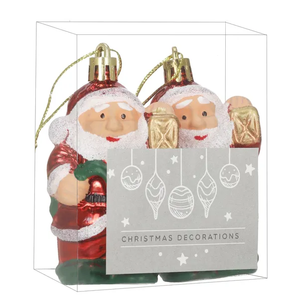 Mikulás karácsonyfadísz, 8 cm, 2 db törhetetlen műanyag