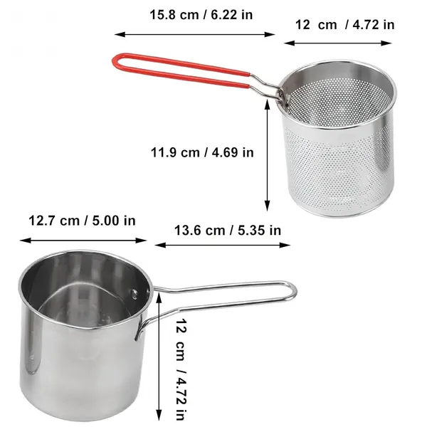 Mini rozsdamentes acél 304 olajsütő edény kosárral, kompakt fritőz