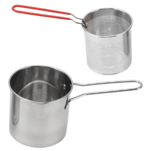 A 304-es rozsdamentes acélból készült kosaras olajsütővel pillanatok alatt készíthetsz ropogós falatokat, miközben kevesebb olajra és helyre van szükséged. Kivehető kosara és levehető nyele leegyszerűsíti a tálalást és a tisztítást, így akár konyhában, akár kempingben gyorsan és biztonságosan élvezheted a frissen sült ételeket.