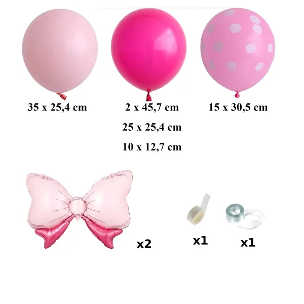 Dobd fel a gyermekszülinapot vagy tematikus partit ezzel a bájos, 111 részes Minnie egér lufi girland szettel! A rózsaszín, fehér és fekete árnyalatok, valamint a pöttyös minták azonnal mesebeli hangulatot teremtenek.