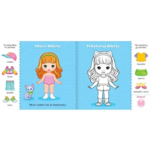 A „Mit vegyek fel?” öltöztetős kifestő színezőivel, matricáival és kivágható papírbabáival játékosan vezeti be a 3 évesnél idősebb gyerekeket az öltözködés világába.