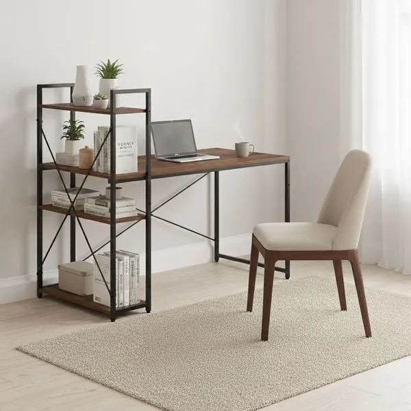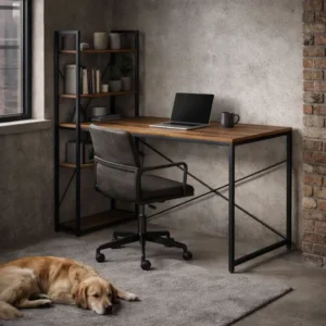 A ModernHome loft stílusú számítógépasztal polcrendszerrel ideális választás otthoni irodába, tanuláshoz vagy gaming setuphoz. A 120×60 cm-es munkalap kényelmes teret ad a mindennapokhoz, a 3 extra polc pedig segít rendszerezni a könyveket, dokumentumokat és kiegészítőket – így mindig rendezett marad a környezet.