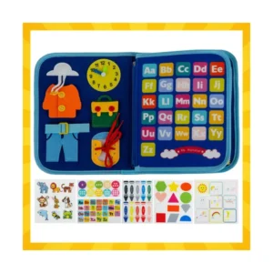 Ez az interaktív, Montessori szemléletű filc foglalkoztató könyv 3 éves kortól segíti a finommotorika, a figyelem és az önállóság fejlődését. A puha, tapintásra változatos elemekkel készült könyv játékosan vonja be a gyerekeket, miközben hétköznapi készségeket gyakoroltat.