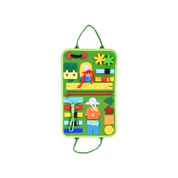 Rögzítés, oldás, kötés és fűzés különböző ruhadarabokon – segít a kézügyesség fejlesztésében és az önálló öltözködés gyakorlásában.