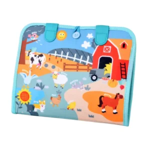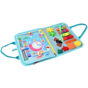 4 szenzoros oldal és 28 feladat fejleszti a finommotorikát, logikát és angol szókincset. A puha, zárható filckönyv könnyű, biztonságos, és bárhová magaddal viheted, hogy gyermeked csendben, képernyő nélkül játsszon.