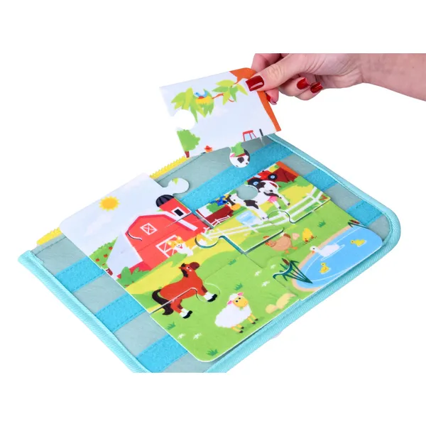 A puha filc biztonságos, kellemes tapintású, az erős gumipánttal és gombbal záródó könyv pedig könnyen hordozható autóban, repülőn, étteremben vagy váróban. Ideális 3 év feletti gyermekek számára, akiknek fontos a képernyőmentes, mégis tartalmas szórakozás.