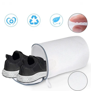 Használat: helyezd a tisztítani kívánt, fűzőjétől és betétjétől megfosztott cipőket a hálóba, húzd be a cipzárt, majd indítsd el a kímélő mosóprogramot. Szárítógépben nem ajánlott szárítani.