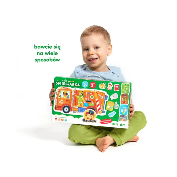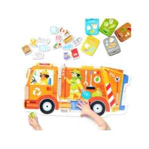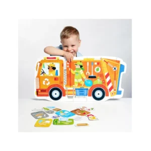 Az extra nagy, strapabíró darabokkal a kicsik könnyedén kirakhatják a színes szemetesautót, miközben megtanulják a szelektív hulladékgyűjtés alapjait és fejlődik a finommotorikájuk.