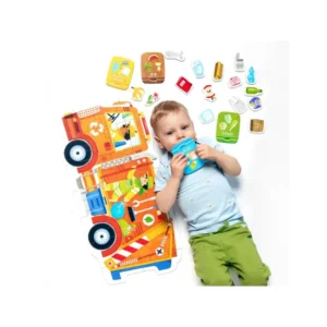A színes illusztrációk segítenek a színek, formák és fogalmak megnevezésében. A gyerekek a hulladékdarabok konténerekhez illesztésével gyakorolják a problémamegoldást, miközben történeteket találnak ki a szemetesautó sofőrjéről és az újrahasznosított kincsekről.