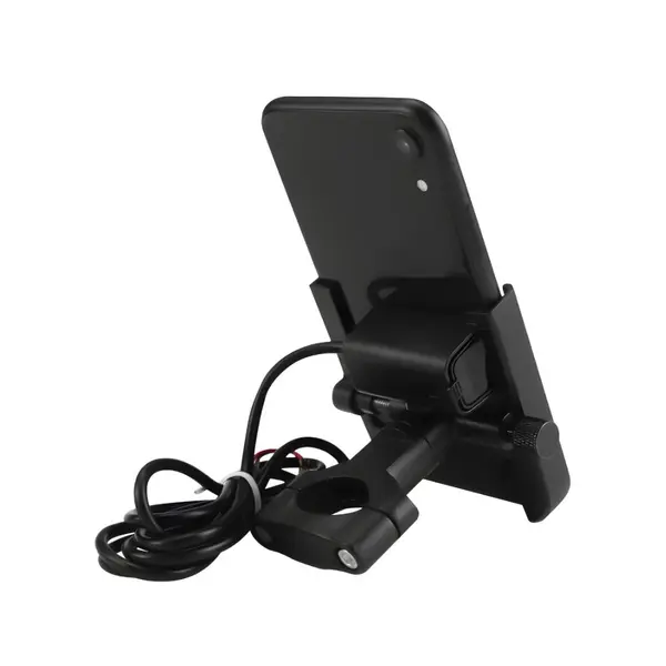 Stabil, állítható motoros telefontartó kormányra, amely biztonságosan rögzíti a készüléket menet közben, miközben a beépített USB töltőporttal gondoskodik a folyamatos töltésről. Ideális hosszabb túrákhoz, GPS-navigációhoz és mindennapi robogós/motoros használathoz.