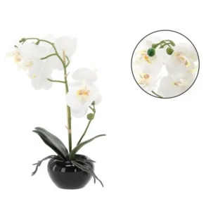 Szeretnéd az orchideák kifinomult szépségét élvezni locsolás és fényigény nélkül? A 30 cm magas, fehér mű orchidea csomag elegáns, mégis praktikus megoldást nyújt otthonod vagy munkahelyed díszítéséhez.