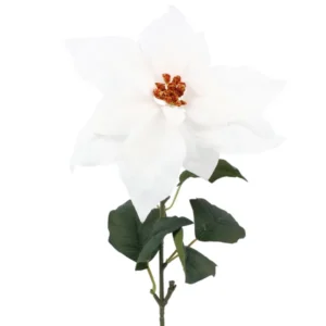 Varázsolj hófehér ünnepi ragyogást otthonodba! Az élethű, 72 cm magas fehér mű poinsettia (karácsonyi csillag) részletgazdag leveleivel és selymes virágzatával teszi elegánssá a karácsonyi dekorációt. A hajlékony, drótos szárnak köszönhetően könnyedén elhelyezhető koszorúban, vázában vagy asztaldíszben, miközben sem vizet, sem különösebb gondozást nem igényel.