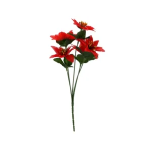 A 40 cm-es mű poinsettia csokor élethű piros levelekkel gondozás nélkül is ünnepi ragyogást visz otthonodba. Koszorúkban, asztaldíszekben és vázában is remekül mutat.