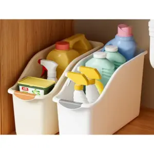 Tarts rendet a konyhaszekrényben, a mosogató alatt vagy akár a fürdőben is! Ez a praktikus műanyag rendszerező átláthatóvá teszi a tisztítószereket, szivacsokat, kozmetikumokat és apró kiegészítőket – így mindig gyorsan megtalálod, amit keresel.