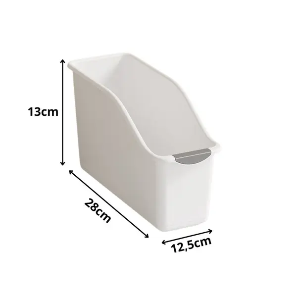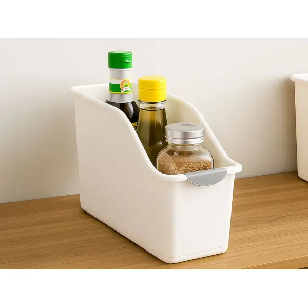 Műanyag konyhai rendszerező kosár fogantyúval, döntött előlappal