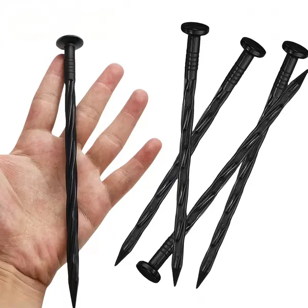 Rögzítse stabilan a kerti elemeket egyszerűen és tartósan! A 15 cm hosszú, strapabíró műanyag rögzítő tüskék megbízhatóan a helyén tartják a gyepszegélyt és a különféle takaróanyagokat, miközben a kialakított fej óvja a felületet a sérülésektől.