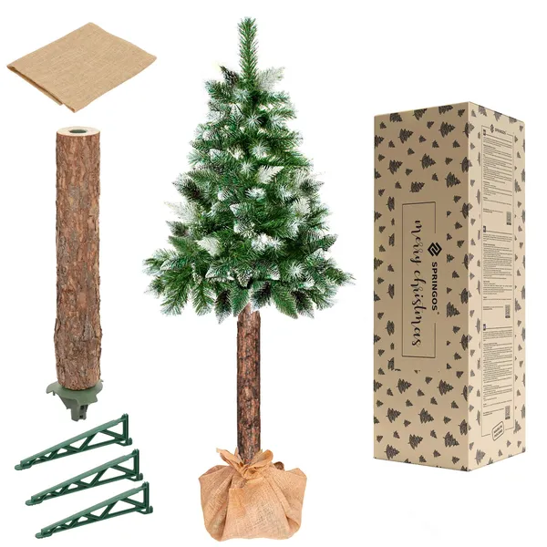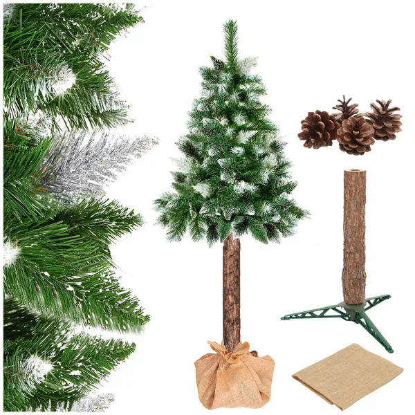 Műfenyő gyémánt fenyő valódi törzsön, havas ágakkal, 140 cm
