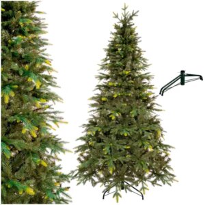 Műfenyő, természetes hatású lucfenyő, 220 cm, PE/PVC, fém talp