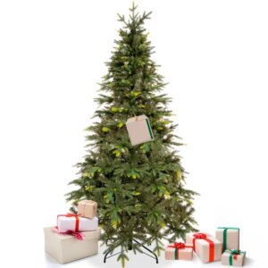 Élethű, sűrű lombkoronájú karácsonyfával varázsolhatod otthonodba az erdei luc hangulatát, miközben a tartós PE/PVC ágak évekig megőrzik formájukat. Stabil négyágú fém talpa biztos tartást ad, az egyszerűen szétnyitható, 838 ágacskából álló korona pedig gyors felépítést tesz lehetővé, hogy a díszítésre maradjon időd.