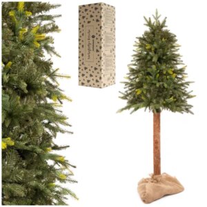 Hangulatos, tűlevélmentes karácsonyi dekorációra vágysz? A 150 cm magas, természetes fa törzsre rögzített műfenyő élethű megjelenést biztosít, miközben a PE/öko fóliából készült, kétszínű ágak nem igényelnek locsolást és takarítást.