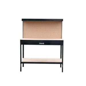 A munkafelület mérete lehetővé teszi, hogy minden szerszám kéznél legyen, miközben elegendő teret hagy a precíz munkavégzéshez. A perforált panel és a fiók kombinációja csökkenti a rendetlenséget, gyorsabbá és hatékonyabbá teszi a munkafolyamatokat.