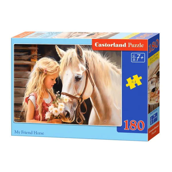 A My Friend Horse 180 darabos puzzle vidám, színpompás kihívás a kis kirakórajongóknak. Az összeállítás után egy aranyos lovas kép készül, amely nemcsak szórakoztató, hanem fejlesztő élmény is.