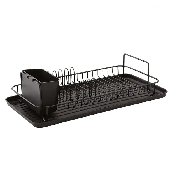 Nagy fekete, egyszintes szárítórács mosogatótálcával
