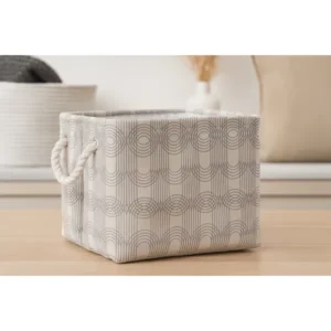 Az L méretű, négyzetes tárolókosárba könnyedén elférnek a játékok, takarók, magazinok vagy akár a szennyes, miközben modern geometrikus mintája elegáns megjelenést kölcsönöz a szobának. Összecsukható kialakítása révén használaton kívül minimális helyet foglal, masszív pamutpántjai pedig kényelmes hordozást biztosítanak az egész lakásban.