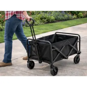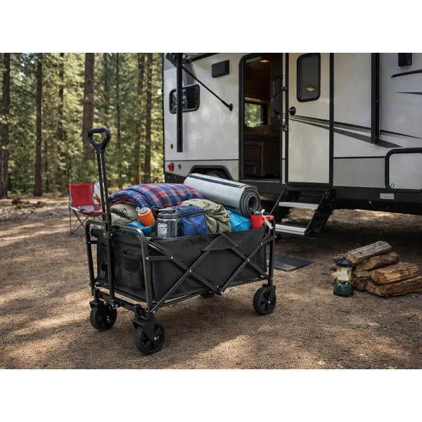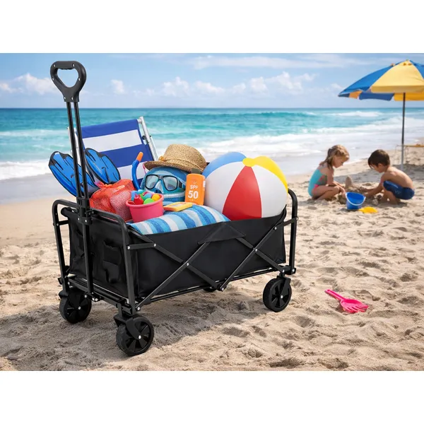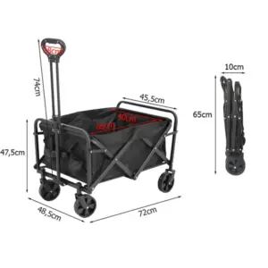 Nagy, összecsukható szállítókocsi utazáshoz, strandoláshoz, kempinghez és kerti munkákhoz. A tágas rakodótérrel kényelmesen elviheted a felszerelést, táskákat vagy bevásárlást anélkül, hogy nehéz csomagokat kellene cipelned. Masszív felépítése és praktikus kialakítása miatt családi kirándulásokon és mindennapi használatban is megbízható társ.