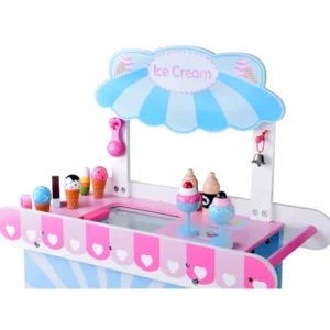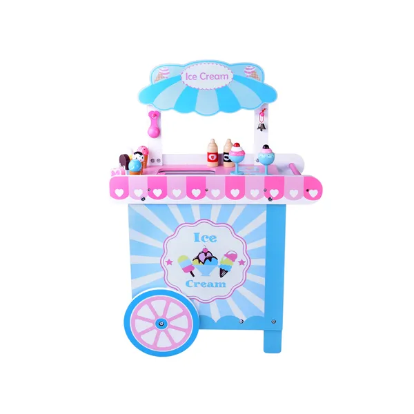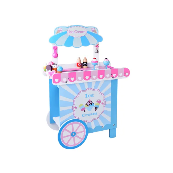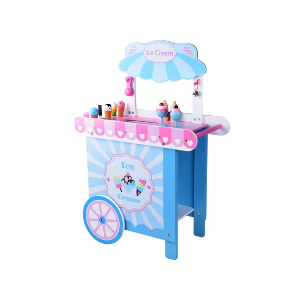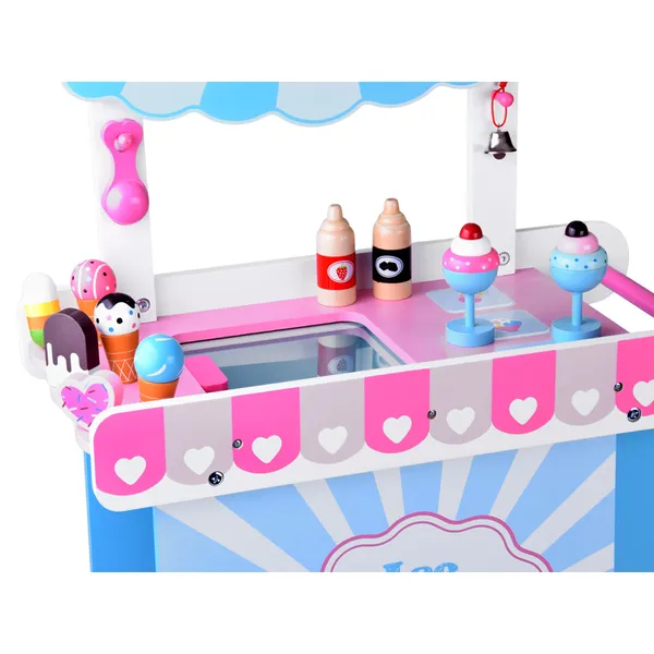 Nagy pasztell fa fagyis pult 8 féle fagyival, kerekes játékkocsi