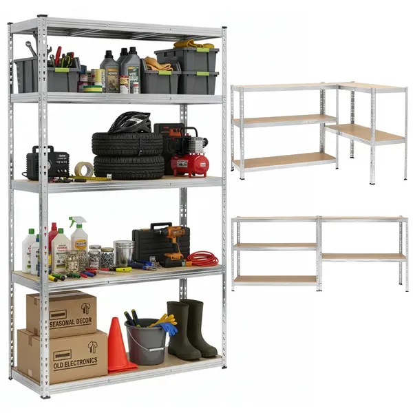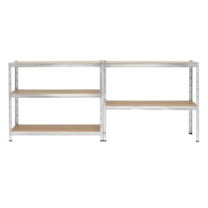Erős, horganyzott fémvázas tárolópolc 5 MDF polccal, amely nagy terhelést is stabilan elbír. Az állítható polcmagasságnak és a többféle összeszerelési lehetőségnek köszönhetően könnyen a garázs, műhely vagy kamra igényeihez alakítható.