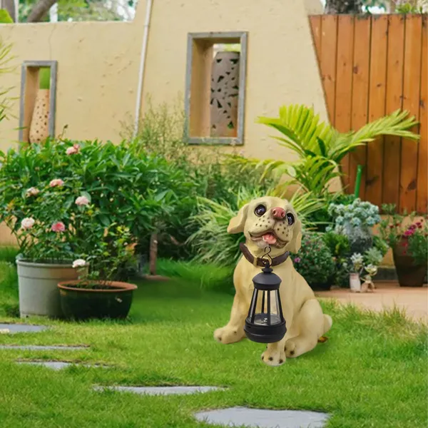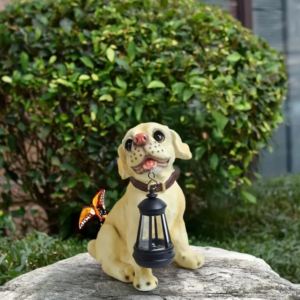 Varázsoljon meghitt hangulatot a kertbe vagy a teraszra ezzel a különleges, napelemes LED kerti dekorációval! A lampiont tartó kutyafigura nappal bájos dísz, este pedig kellemes, hangulatos fényt ad – vezetékek és bonyolult telepítés nélkül.