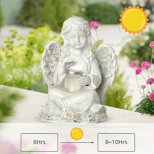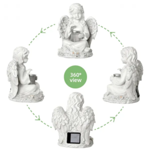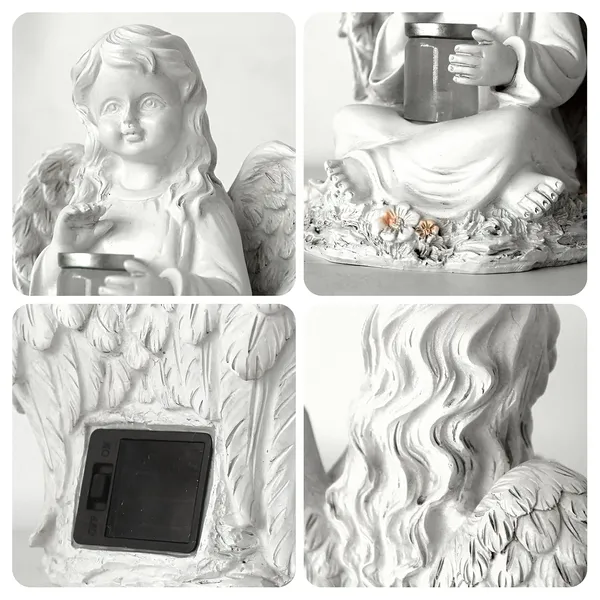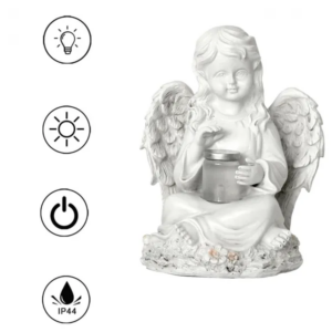 Fedezd fel ezt a gyönyörű, 18 cm magas napelemes LED angyalszobrot, amely nappal elegáns dísze kertednek vagy erkélyednek, alkonyatkor pedig meleg, meghitt fényt áraszt.