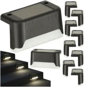 A 8 darabos napelemes LED lépcsőlámpa készlet hangulatos, meleg fehér fényt biztosít a lépcsők, teraszok vagy kerítések megvilágításához, miközben nem emeli az áramszámlát.