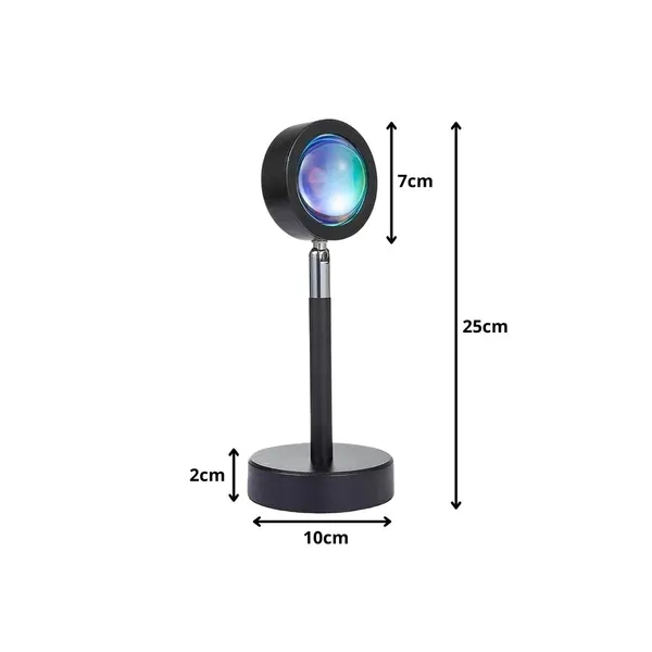 Az RGB LED naplemente-projektor stabil fém állvánnyal, USB tápellátással és távirányítóval egyetlen mozdulattal hoz létre varázslatos, színes fényeket. Fotózáshoz, pihenéshez vagy bulikhoz is ideális, mert 16 szín közül választhatsz, állíthatod a fényerőt, és pillanatok alatt romantikus hangulatot teremthetsz.